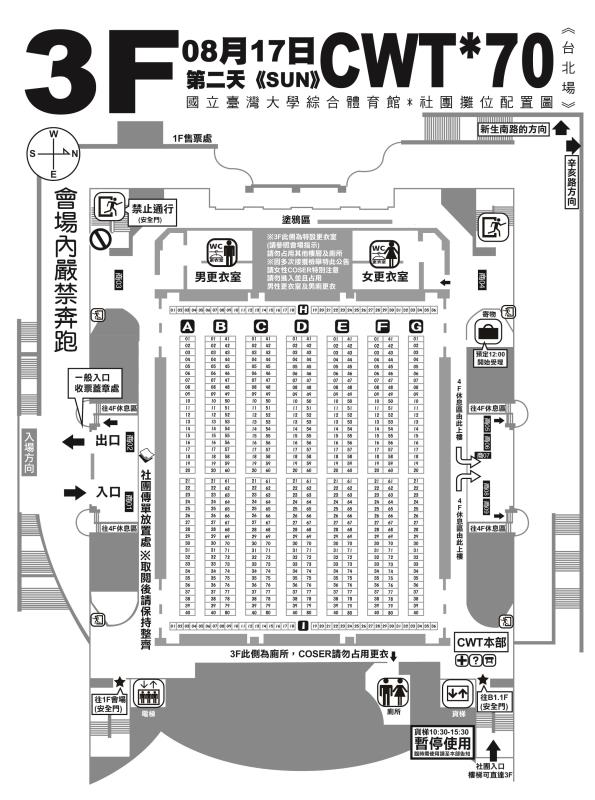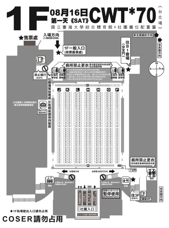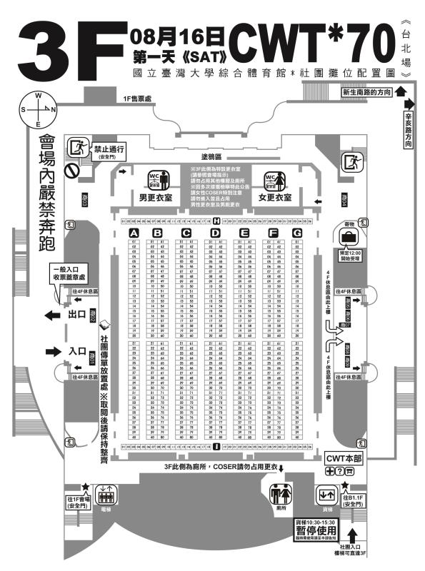 【CWT-70】《臺北場》第一天|08月16日(六)|社團攤位號碼| |